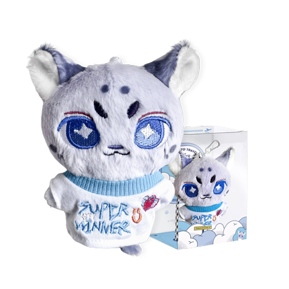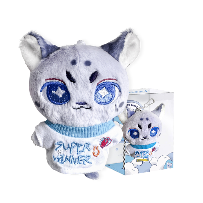 常规单款含:1个 小豹子毛绒公仔,1件 《Super Winner》主题娃衣T恤,1组 钥匙扣+装饰挂绳;