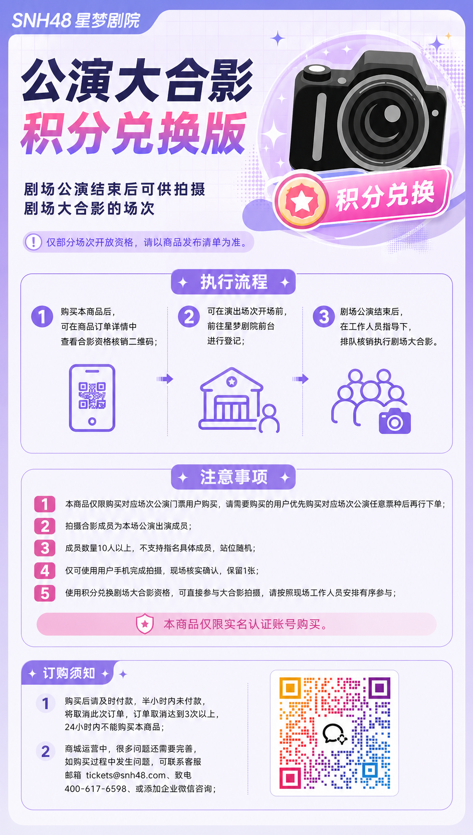 剧场公演结束后可供拍摄剧场大合影的场次,仅部分场次开放资格,请以商品发布清单为准。
