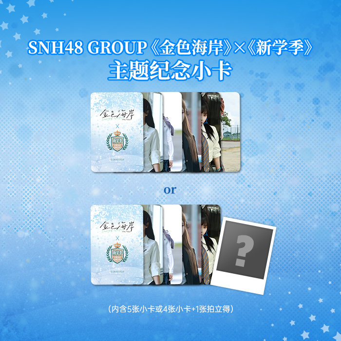 本次小卡收录了 SNH48 GROUP 高飞组成员在汇报单曲《金色海岸》、梦想组成员在《新学季》MV拍摄现场的精美图片。